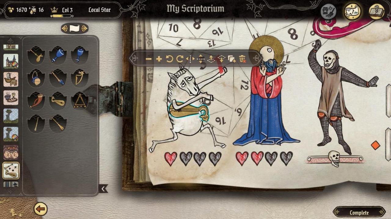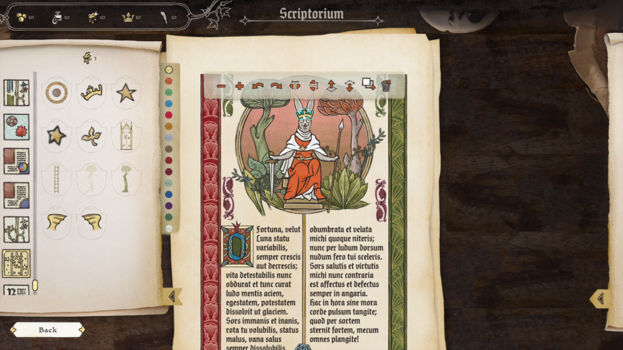 经营你自己的手稿工坊,接收各种订单,帮客户绘制中世纪书籍插画,怎么布置全凭你喜欢。完成后寄回给客户即可赚取报酬,还能解锁新工作、新装饰和各种物品。欢迎来到专属于你的中世纪缮写室!